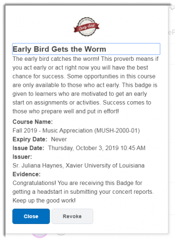 Creating and issuing badges in Brightspace is easy. Sr. Juliana received positive feedback from her students.